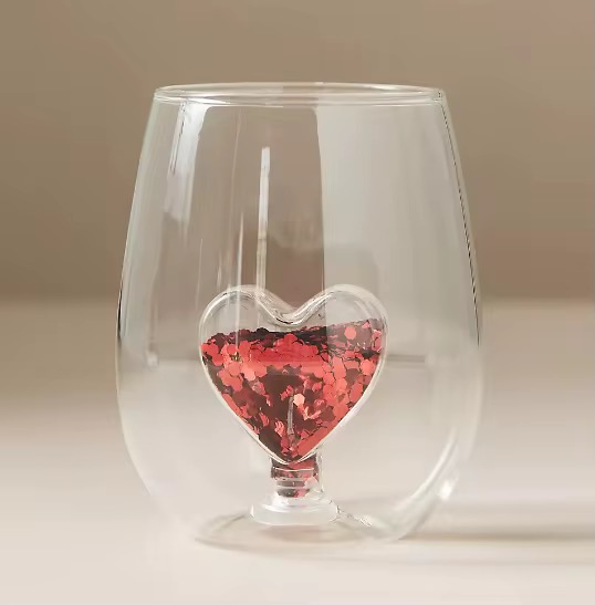 ماگ شیشه ای قلبی دو طرفه خارجی ولنتاین( لیوان - جام)